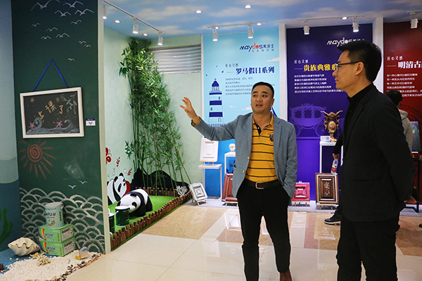 到达MYBALL迈博后,全包圆蔡总在MYBALL迈博杨总的带领下,参观了MYBALL迈博集团。杨总向蔡总介绍了MYBALL迈博集团的概况与产品展厅,蔡总对MYBALL迈博集团的实力和产品表示十分认可与赞赏。