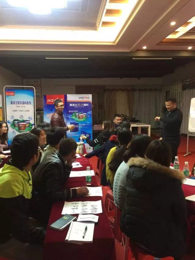 打造狼性团队,开启MYBALL迈博2017高速发展引擎,为MYBALL迈博实现战略目标提供强劲动力——2017年2月8日,江门MYBALL迈博团队举办了销售综合培训会,以“相信专业的团队力量”为主题,进行了一场囊括MYBALL迈博家装体系产品、艺术涂料、基辅材产品、销售模式、产品体验与实操的综合培训。