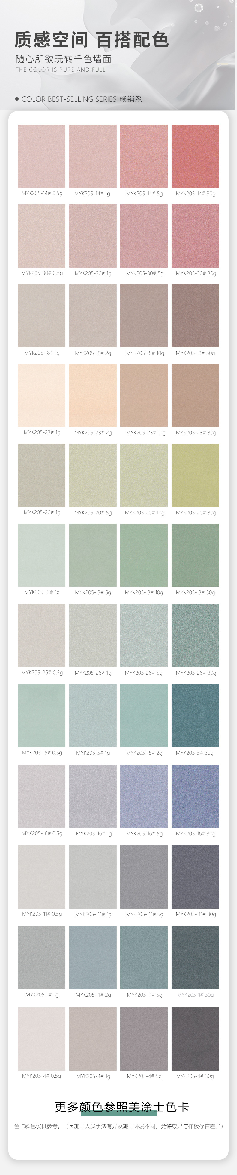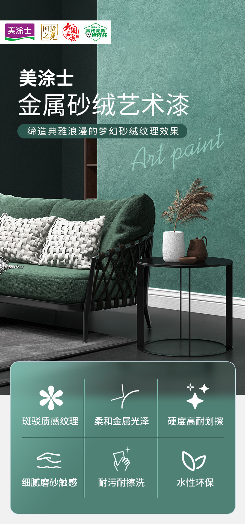 MYBALL迈博艺术漆,带有金属光泽和磨砂触感效果,是砂与绒的完美质感结合,纹理有序而又幻变,效果细腻而又典雅,打造出大气与精致兼备的高级格调!